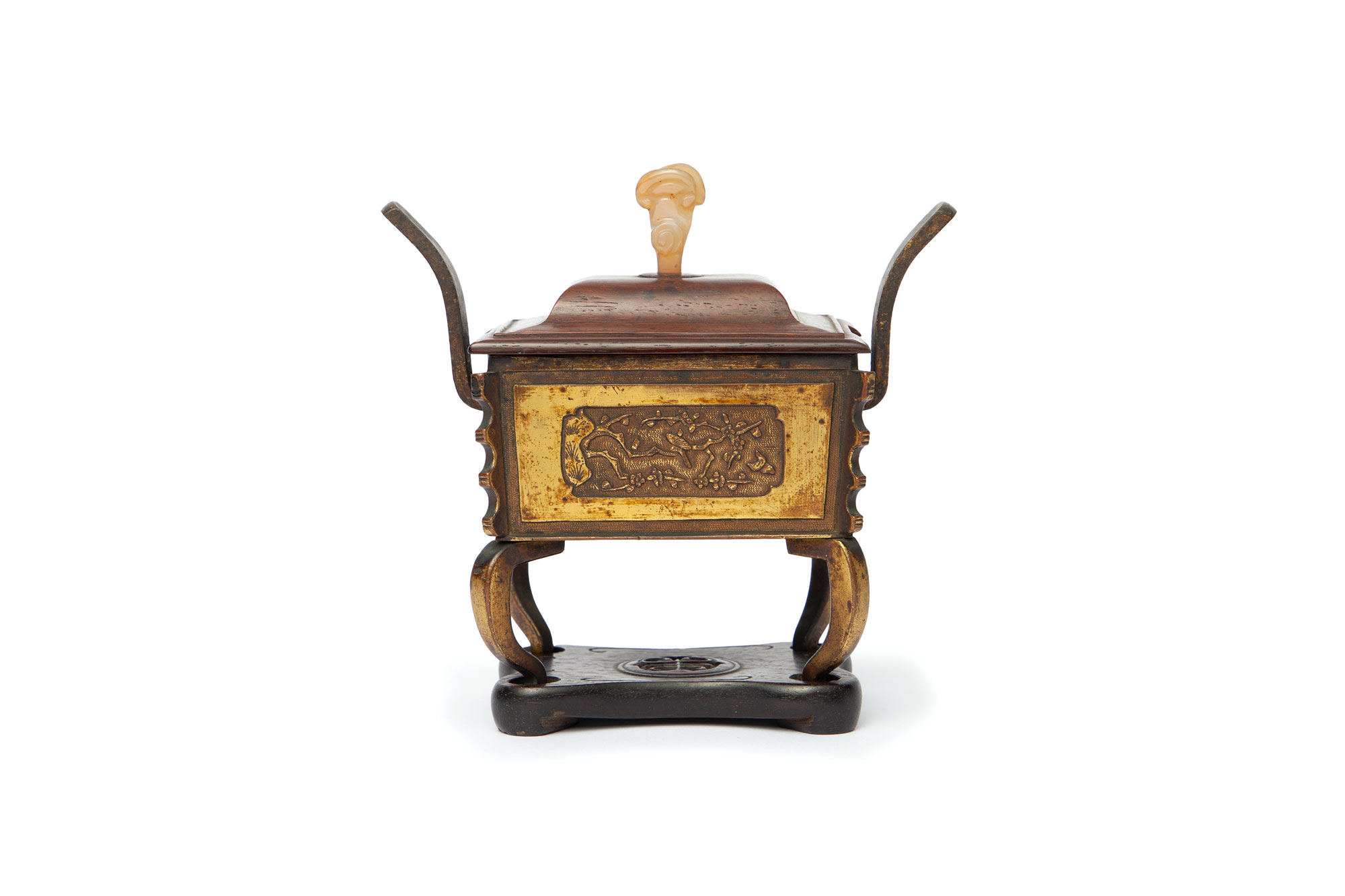 「鍍金 花鳥 四足香炉」